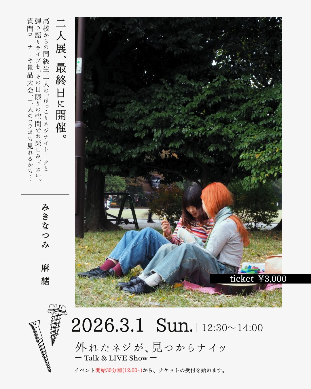 ✔最終日(3/1)トークショー&弾き語りライブ開催🔥