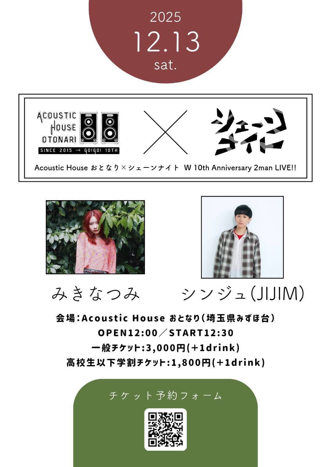 一般チケット:3,000円(+1drink)